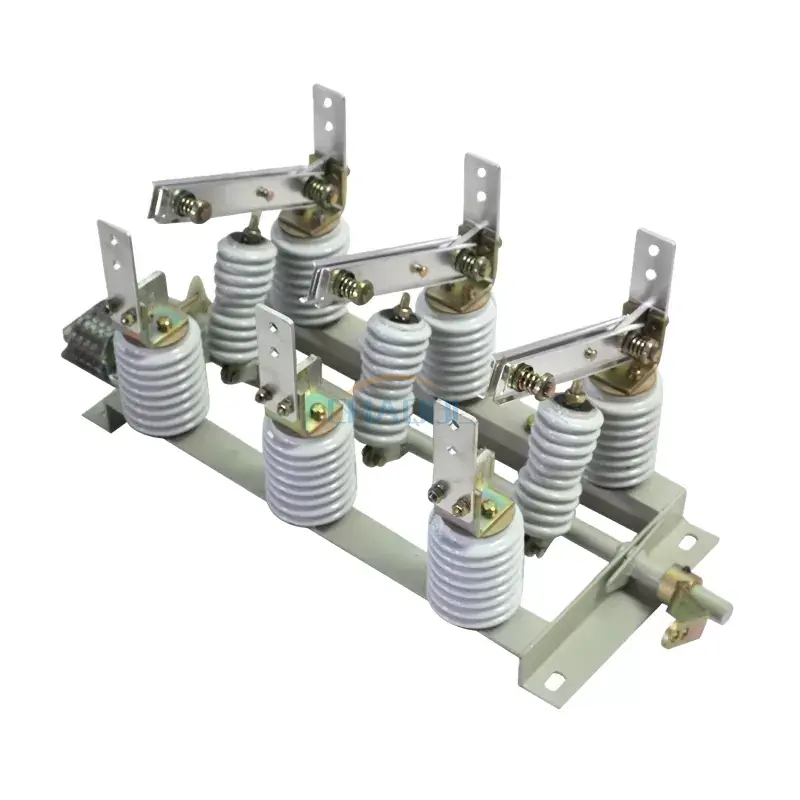 Anqiang Power의 실내 고전압 차단 스위치는 베이스 프레임, 회전 샤프트, 연결 로드, 도자기 포스트 절연체, 스위치 블레이드 및 단자대로 구성된 3극 유형입니다. 회전축은 베이스 프레임에 장착되며, 상단에는 3쌍의 레버가 용접되어 있습니다. 이 레버는 커넥팅 로드와 도자기 절연체를 통해 스위치 블레이드에 연결됩니다. 회전 샤프트는 베이스 프레임에서 연장되며, 그 일부는 작동 메커니즘에 연결될 수 있습니다. GN19-12W는 내오염성 유형입니다. GN19-12G는 고고도 유형입니다. GN19-12X에는 내장형 전압 표시기가 포함되어 있습니다. GN19-12ST는 이중 던지기형 차단 스위치입니다.